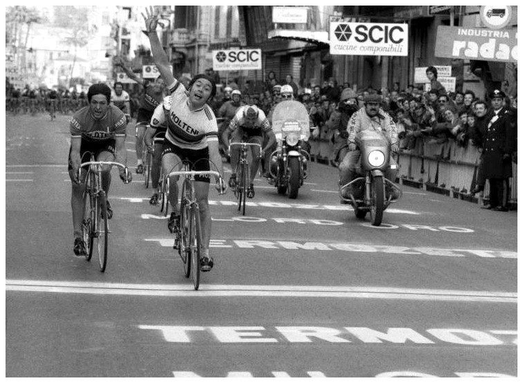 Inoltre la Classicissima è un aggancio romantico al ciclismo dei pionieri che ai primi del Novecento si sciroppavano centinaia di chilometri ogni volta, senza gli appoggi di cui possono godere oggidì i professionisti. La prima edizione si corse nel 1907 per volere di Tullo Morgagni, Eugenio Camillo Costamagna e Armando Cougnet, i tre giornalisti della Gazzetta dello Sport che due anni più tardi daranno il via al Giro d’Italia. A vincerla il francese Lucien Petit-Breton. Scorrendo l’elenco, dopo di lui, si incontrano nomi scolpiti nella storia del ciclismo. Solo per citare i più famosi: Costante Girardengo, Giovanni Brunero, Alfredo Binda, Learco Guerra, Gino Bartali, Fausto Coppi, Louison Bobet, Rik van Looy, Raymond Poulidor, Roger de Vlaeminck, Beppe Saronni, Francesco Moser, Sean Kelly, senza dimenticare quello che ne ha in bacheca di più, Eddy Merckx, il Cannibale che ne conta sette.